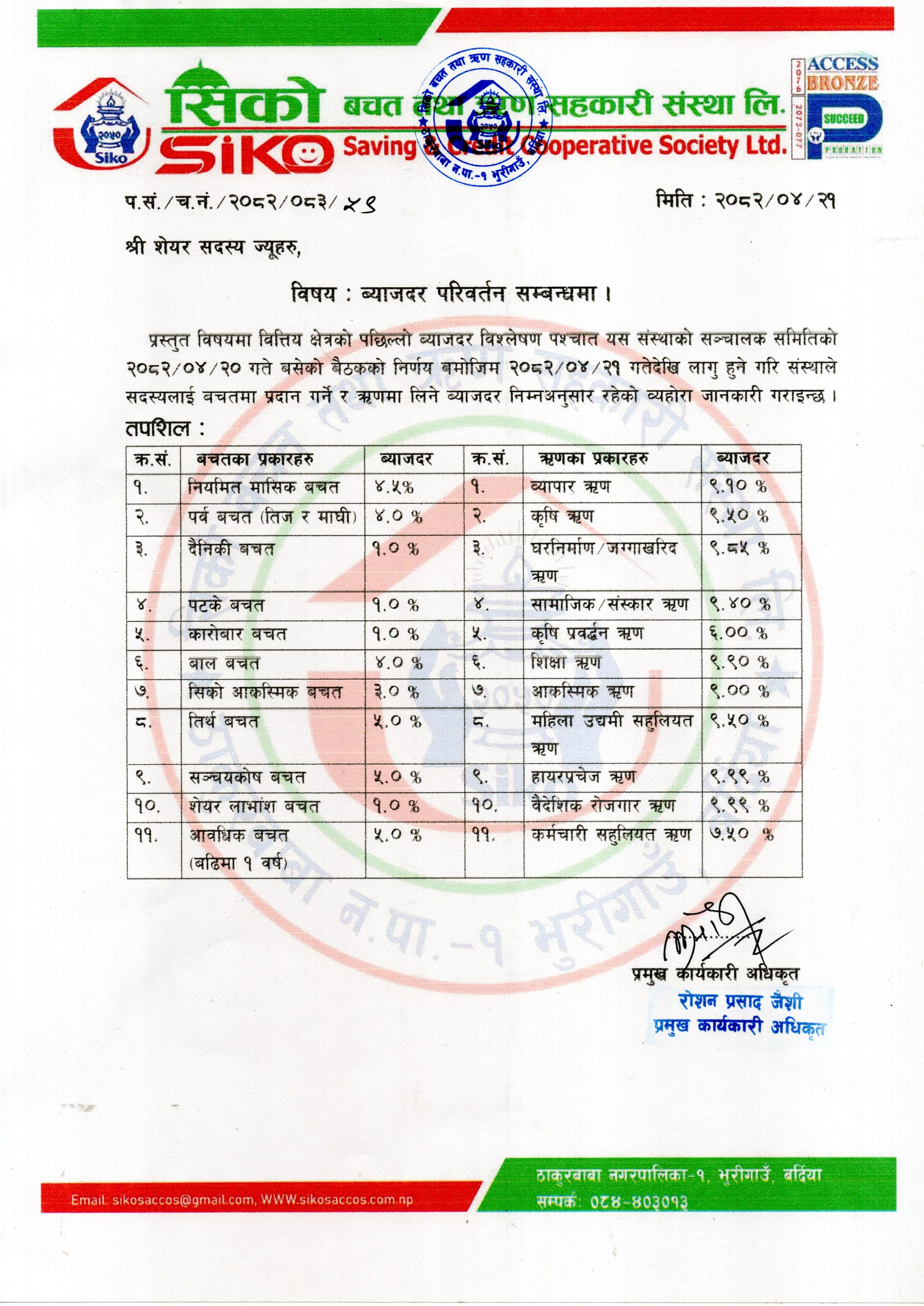 सिकोको क्रियाकलापप्रति आम चासो बृद्वि हुनुले पनि संस्था एकीकरणको सकारात्मक सन्देश प्रवाह भएको महशुस भएको छ । सिको बचत तथा ऋण सहकारी संस्थाको स्थापना र यसका उत्पादित सेवाहरुलाई संस्थागत विकासका साथै यसको कार्यक्षेत्र भित्र बसोबास गर्ने समुदायको पनि उन्नति र प्रगति हुँदै गएको कुरा हामी सबैलाई अनुभुति भएकै कुरा हो । संस्थाले उत्पादन गरेको वित्तिय सेवाबाट विशेषत ग्रामिण क्षेत्रममा बसोबास गर्ने, आवशयक परेको बेला साहु महाजन कहाँ धाउन नपर्ने र चर्को व्याज तिर्नुपर्ने अवस्थालाई विस्थापित गर्न र अन्य वित्तिय क्षेत्रमा पहुँच नभएका आम सदस्यहरुलाई सरल र सहज रुपमा यो संस्थाले सेवा प्रदान गर्दै आइरहेको व्यहोरा जानकारी गराउँदै यो संस्था हाम्रो पौरख र हाम्रो गौरवको रुपमा स्थापित भएको छ भन्ने कुरा पनि स्मरण गराउन चाहन्छु । Read More……